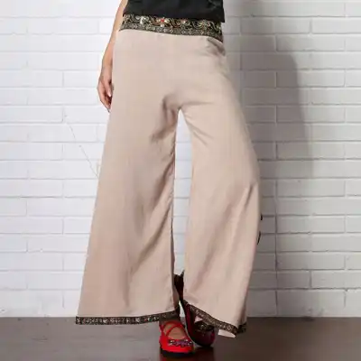 民族风花边阔腿裤亚麻裤中腰裙裤休闲裤女裤特价